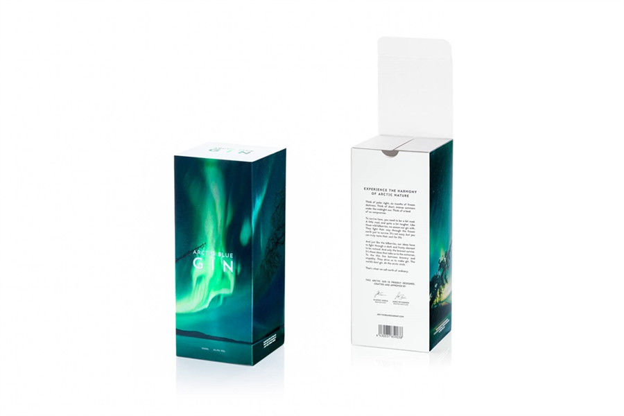 AIMCAL, der Verband der internationalen Metallisierer, Beschichter und Laminierer mit Sitz in den USA, hat der Hazen Paper Company für ihre mit flammenden Nordlichtern gestaltete Verpackung für den Arctic Blue Gin den Preis „Product of the Year 2020“ verliehen. Metsä Board entwickelte die Verpackungsstruktur, die Originalgrafik und die Prägung. Die markante Verpackung wird aus der leichtgewichtigen, festen Faltschachtelkartonqualität MetsäBoard Pro FBB Bright 350 g/m2 hergestellt.