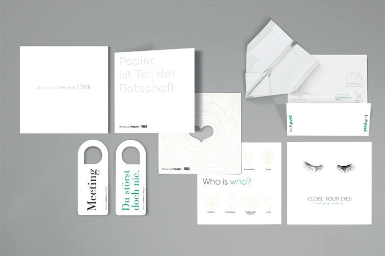 Auf sechs verschiedenen Recyclingpapieren der Marke enviro gedruckt, wird mit dem hochwertigen und kreativ gestalteten Mailing Nachhaltigkeit in Papier sicht- und spürbar. So bringt etwa ein „Who is Who?“ Licht in die herbstliche Blätterkunde. Der Einleger „Close your Eyes and feel nature“ fordert zur haptischen Begegnung mit Recyclingpapier auf. Nachhaltigkeit im Office wird mit dem „Kurzstreckenflieger zum CO2-freien Nachrichtenaustausch“ zum interaktiven Erlebnis.