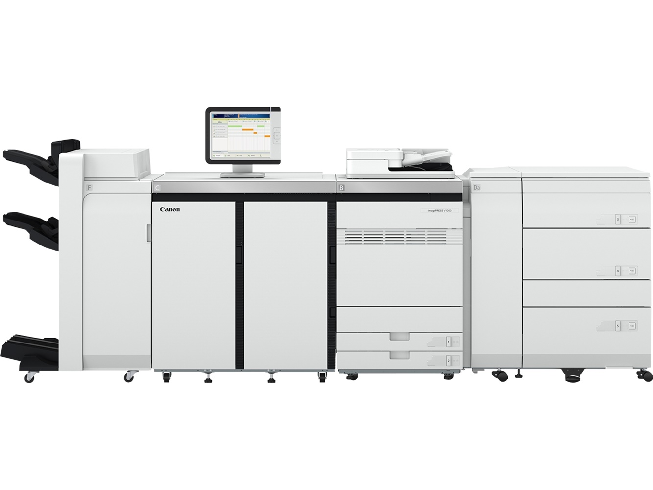 Canon komplettiert mit der Einführung eines neuen digitalen Einzelblatt-Farbdrucksystems sein bewährtes Line-up in der ImagePress Produktionsdruck-Serie. Die neue imagePRESS V1000 wartet mit bewährten Funktionen, aber auch mit neu entwickelten Finessen auf und schließt die Lücke zwischen den Serien C910 und C10010VP. Das System meistert die täglichen Produktionsherausforderungen von kommerziellen und Inhouse-Druckdienstleistern mit gleichbleibend hoher Qualität vom ersten bis zum letzten Ausdruck, maximaler Zuverlässigkeit und Betriebszeit. Es verbessert die Produktionskapazitäten und damit auch das Anwendungsangebot von Druckdienstleistern.