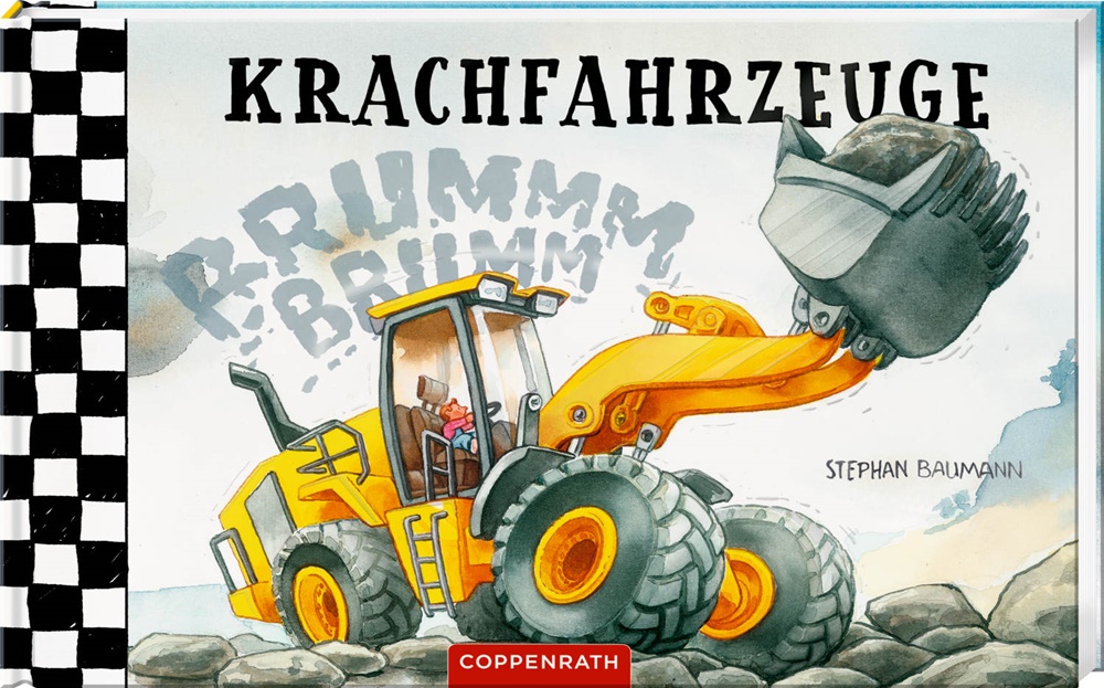 „Groß, stark, schnell und laut!“ ist das Motto des großen Buches der Krachfahrzeuge. In diesem Buch finden Sie 25 Illustrationen von Stephan Baumann, die sowohl Groß als auch Klein faszinieren. Wie auch in der realen Welt, beginnt die Luft zu vibrieren und das Dröhnen der Motoren geht in den Bauch, sobald man in den Seiten blättert. Mit wenigen Worten und umso eindrucksvolleren Bildern vermittelt Stephan Baumann, wie faszinierend Fahrzeuge sind, und lässt uns diese mit „Krachfahrzeuge“ durch seinen kindlich offenen Blick sehen. Von Bussen über Bagger bis hin zu Sportautos ist alles dabei.