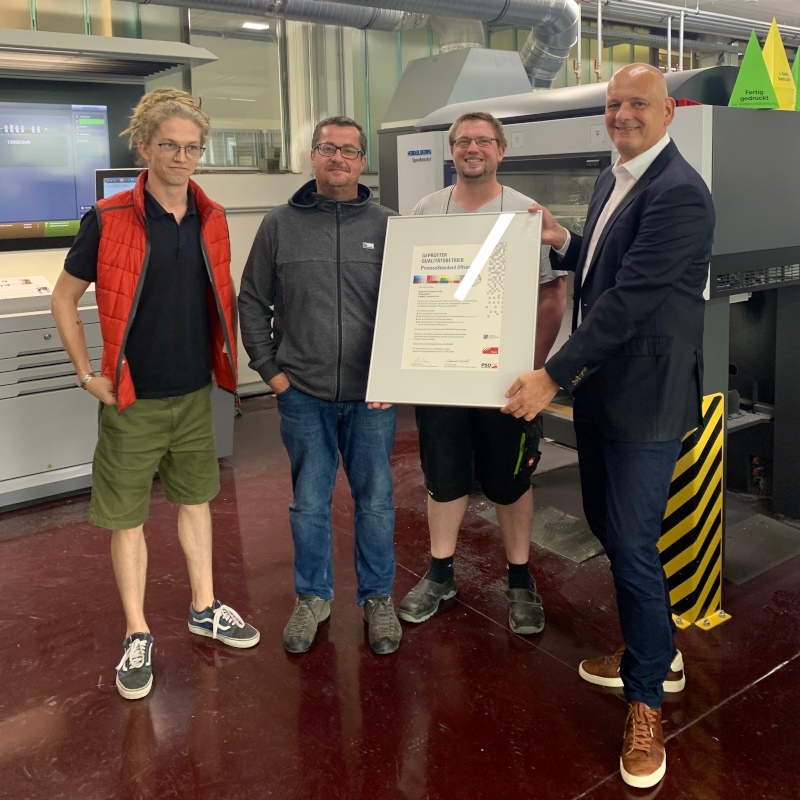 Hutter Druck hat erfolgreich die Zertifizierung nach dem ProzessStandard Offset erhalten. Die Auszeichnung, die durch den Verband Druck und Medien gemeinsam mit der Fogra entwickelt und zertifiziert wird, bestätigt das hohe Qualitätsniveau der Produkte sowie ein effizientes und kundenorientiertes Auftragsmanagement.