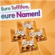 Anlässlich des 50-jährigen Jubiläums der Marke Toffifee hatten Verbraucherinnen und Verbraucher die Möglichkeit, Toffifee-Packungen mit prominentem Aufdruck eines Namens zu personalisieren. Unter dem Motto „Deine Toffifee, Deine Namen“ wurde aus „Toffifee“ Alex, Anna, Daniel oder Julia. Gedruckt wurden die personalisierten Schuber auf der HP Indigo 35K Digitaldruckmaschine. › mehr |